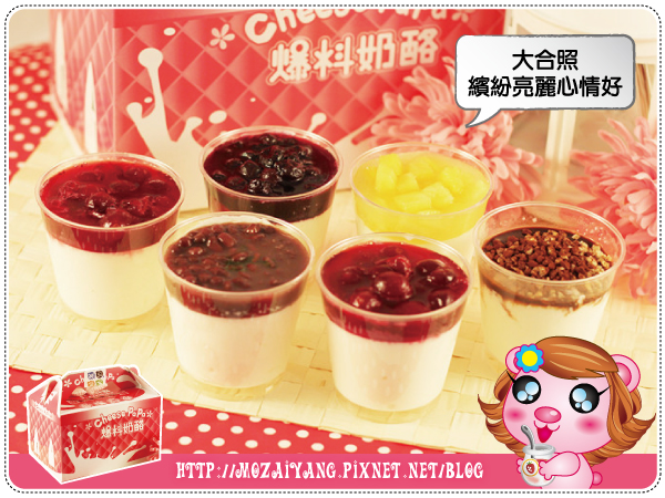 禮盒內總共有六杯奶酪,但只有五個口味,分別是:蔓越莓/抹茶紅豆/藍莓/鳳梨/巧克力,其中蔓越莓的有兩杯,茉茉本來有些疑惑為什麼蔓越莓有兩杯,後來等拍完照片才想到à啊啊啊~我應該把其中一杯當成原味來吃才對,最能吃出奶酪香味的就是原味了啊!