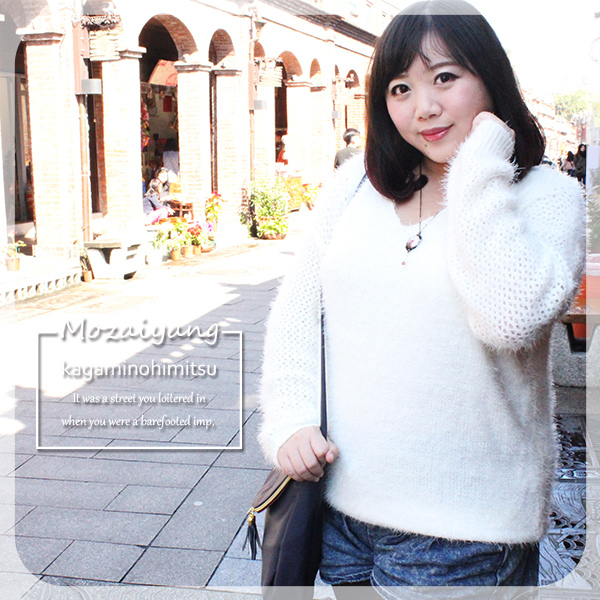↓白色毛衣的質感毛毛得很柔軟,不厚重但保暖,V領可修飾我的短脖子,