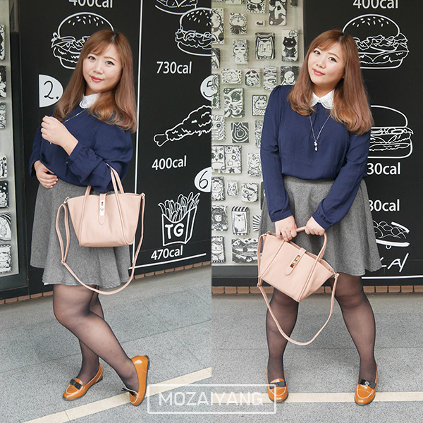 所以就來個全身深藍搭配這樣,不過其實褲襪搭黑色也OK啦!