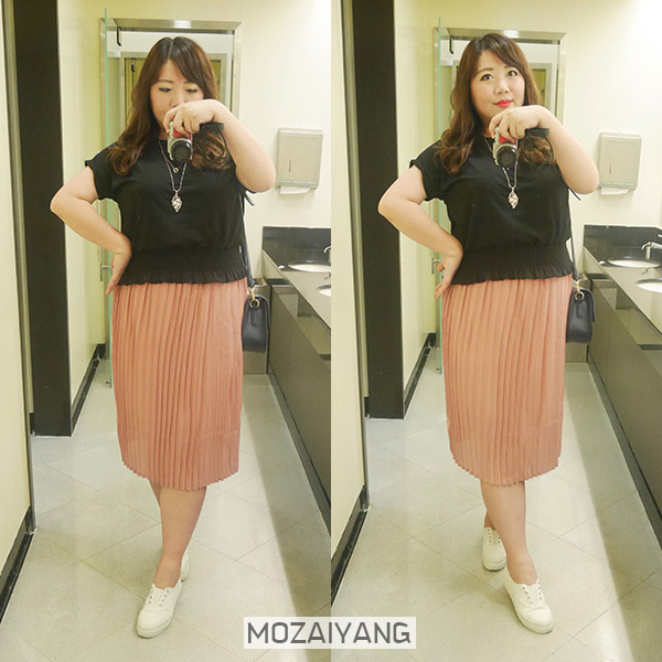 沒有我既定印象中的顯胖,改天再來研究看看寬百褶穿起來如何。