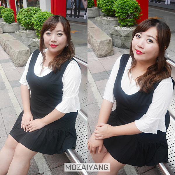 黑色背心洋裝也是彈性的材質,跟白色內搭比就沒那麼透,