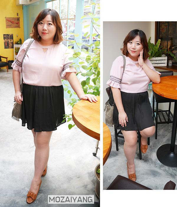 ↓粉紅色上衣是我很喜歡的優雅款式,領口小心機做了一個倒三角,