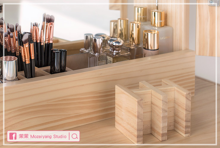 圓滑處事化妝桌是小寶優居裡一位女設計師的作品,它的問世起因是那位女設計師要結婚了,在佈置新居挑選傢俱時,一直找不到自己理想中的化妝桌,決定自己設計一個,也因為是按照自己理想設計的,收納功能相當完善,外型也充滿質感,比起坊間販售的眾多化妝桌來的亮眼許多。
