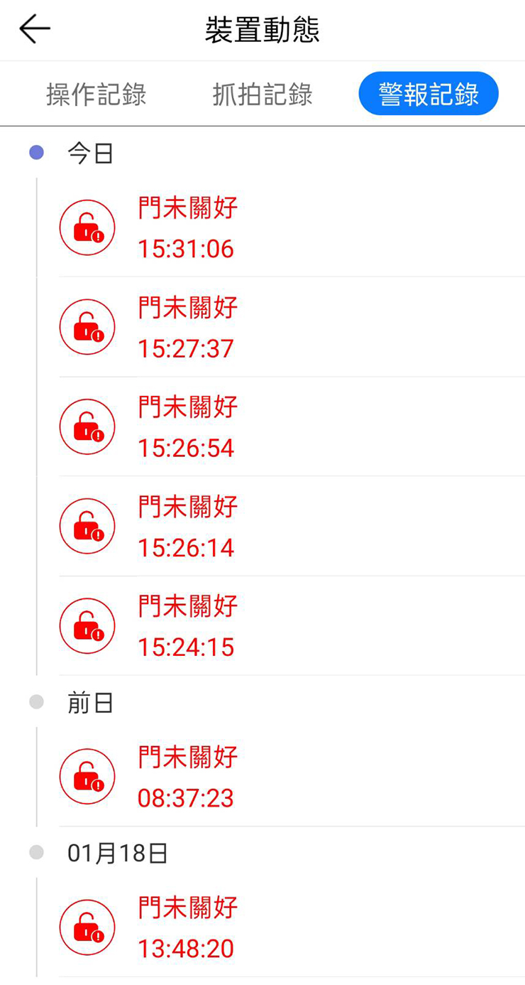 APP上可察看清楚的進出門紀錄,還有電子式兒童安全鎖設計,防止孩童、寵物誤觸解鎖闖出,像我們鄰居的貓就擅自開門出來逛大街很多次了,這功能絕對需要!另外還可以遠距離視訊、設定臨時密碼、保全、反鎖等功能,出門旅行多天不在家也很放心!