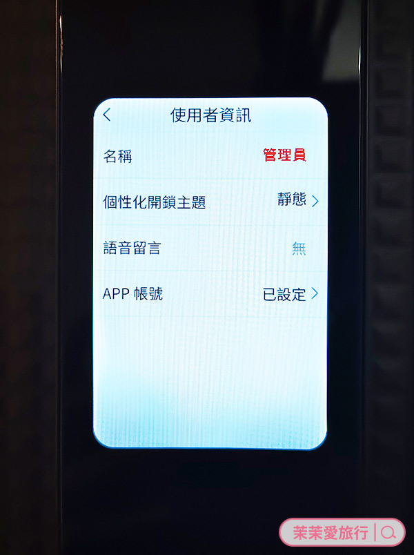 ▼還有「客製化迎賓畫面」,可以自由設定喚醒畫面、留言內容及音樂,使用外螢幕直接設定的話,只能選擇內建的圖案,我就先設定了我的生肖豬,後來發現APP內可以自行上傳喜歡的照片,我就改成自己的照片啦~我們家三個人設定的都不一樣,每次開門都有一種被歡迎回家的感覺!好窩心啊~