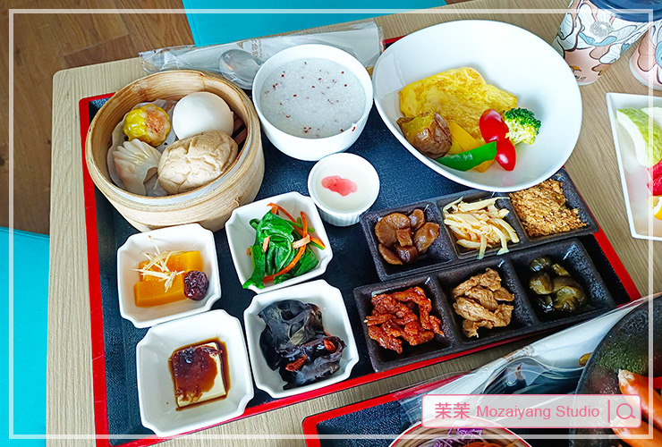 前一天晚上9:00前要先填好早餐選單,會在指定的時間專人送到客房來,送來的時候都包著保鮮膜,保持食物的新鮮及衛生。有中式及西式兩種選擇,我就選了一中一西啦!