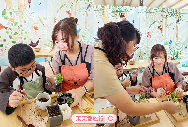 ▼這是我第一次帶著孩子一起手作多肉盆栽(對~之前都我一個人做),這個很好玩很療癒,老師會手把手的教我們,對園藝等級幼幼班的人來說也不難,孩子當然可以一起動手體驗。