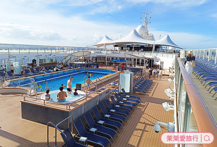 ▼我最喜歡甲板泳池了,可惜這幾天剛好姨媽來攪局,我就沒下去游泳了,但是在這裡欣賞海天一色,什麼煩惱都沒了!