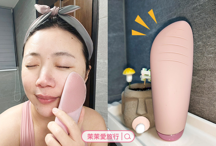 ▼洗完臉後,抹上保養品,接著利用背後的溫感弧線按摩臉部,可以讓保養品更好吸收。