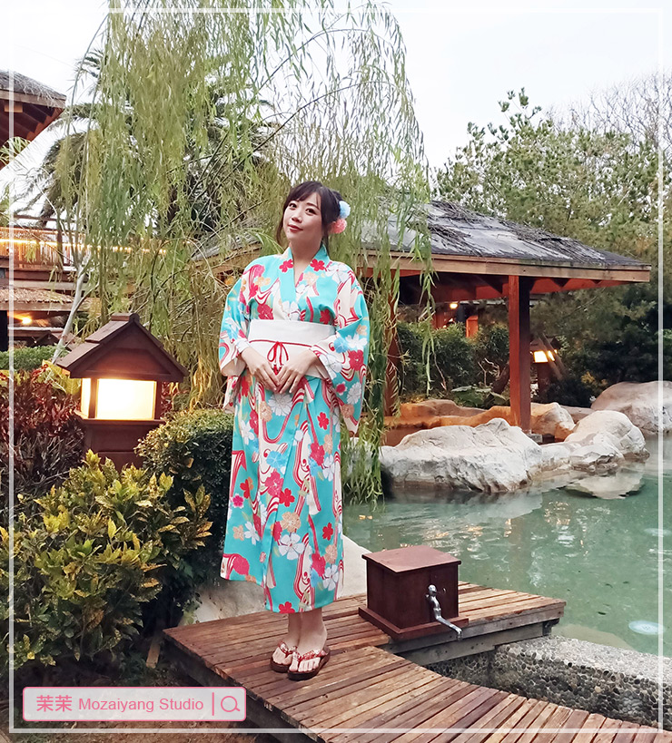 ▼這裡是戶外溫泉泡腳池,我覺得浴衣非常符合情境,所以自己準備了浴衣來拍照(星月大地沒有提供浴衣服務,那天有遊客問我,所以我備註一下),這裡真的很適合外拍美照,推薦大家可以帶自己喜歡的衣服來拍照喔!