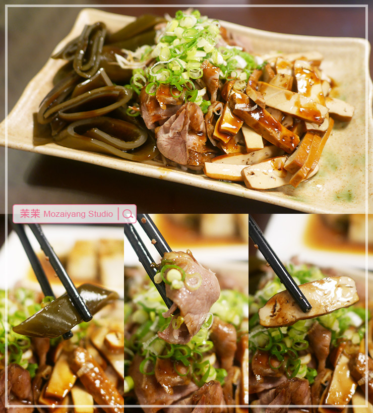 小菜也很好吃,豆干切比較薄,入口口感很好,嘴邊肉吃起來是有點QQ的口感喔!