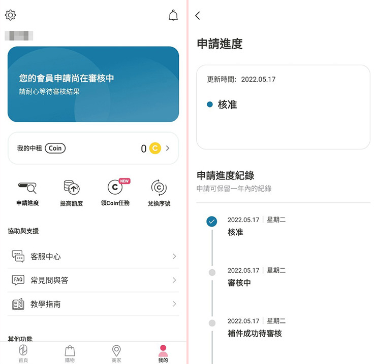 ▼APP內可以隨時查看申請進度,其實審核還滿快的,我送出申請後的隔天早上,就接到打來的照會電話,接著我的會員權限就開通囉!